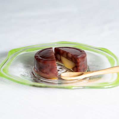 昔ながらのつくり方で仕上げた、丹波栗と丹波大納言小豆の水菓子。丹波栗のムキ栗と丹波大納言小豆を涼やかな寒天で包みました。音衛門の地元、丹波の恵みと素材の味わいを、そのままお楽しみいただけます。冷やして美味しくお召し上がりください。