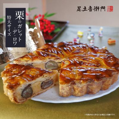 ガレット・デ・ロワとは…フランス語で「王様のお菓子」。フランス各地方でキリスト教の公現祭(1月6日)に、みんなで新年の幸せを祈って食べるパイ菓子です。普通は、パイにアーモンドクリームだけを入れるのですが、おとえもんのガレット・デ・ロワは、栗もしっかり入れました。食べ応え十分のケーキは、新年のお祝いのスイーツにぴったり。いっしょに届く、フェーブと王冠は、ご家族でワイワイお楽しみいただけるお菓子です。中にフェーブ(そら豆)と呼ばれる小さな陶製の人形が1つ入っていて、 切り分けられた自分のパイからフェーブが出てきた人は、 その日1日王様、女王様!紙で作った王冠をかぶり、みんなから祝福を受け、その幸運は1年間続くのだそうです。 今回フェーブはパイの中に入れず別に1個お付けし、さらに王冠1個も付いてます。 ご家族、ご親戚やお友達のお集まりに。 新年のスイーツは、おとえもんの栗のガレット・デ・ロワで