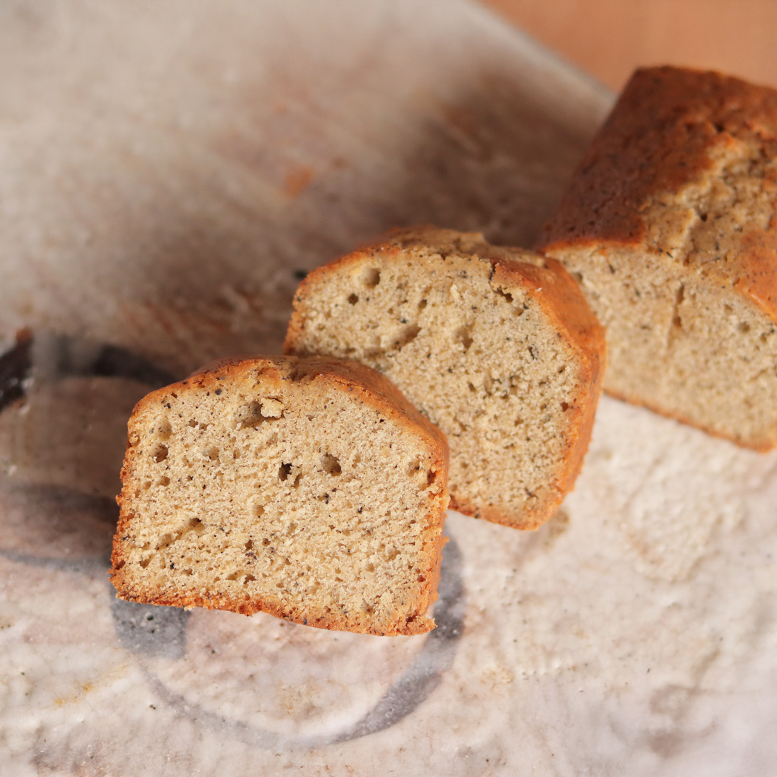 細かくくだいたアールグレイの茶葉を粉に加え、 さらにアールグレイの茶葉をミルクで煮出して エッセンスにして加えました。あとくちにやさしい紅茶の香りが広がります。アールグレイは、イギリスのグレイ伯爵が東洋の紅茶を絶賛し、それと同じ味を作ってくれとイギリスの紅茶商人に命じて作らせた紅茶が由来で、シチリア島で取れるベルガモットを用いて着香したという説があります。一口飲むと、ほっと心休まる味わいを、そのままパウンドケーキでご用意しました。