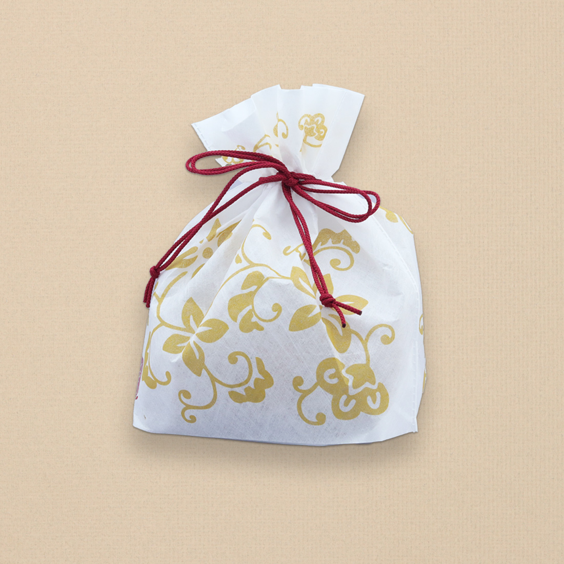 ほっこり丸く、油で揚げて、ひとつひとつ丁寧に糖衣をまとったその姿は、まるで昔ながらのおやつのよう。はじめて口にしたときの、やさしい甘さと素朴な風味が忘れられず、信州で出会ったドーナツを手掛けるメーカーさんに飛び込みでお願いをして、音衛門のオリジナルのドーナツを作っていただきました。素材には、香り豊かな発酵バターと、上品な甘みの和三盆糖をご用意して、何度も試作を重ねて完成した自信の逸品です。どこか懐かしく、しみじみと美味しい。子どものころ、おばあちゃんの家で食べたような、心がほぐれる味わいをお届けします。和柄の巾着バッグにそっと包んで―しみじみ感じる美味しさと、懐かしさを丸ごと詰め込みました。