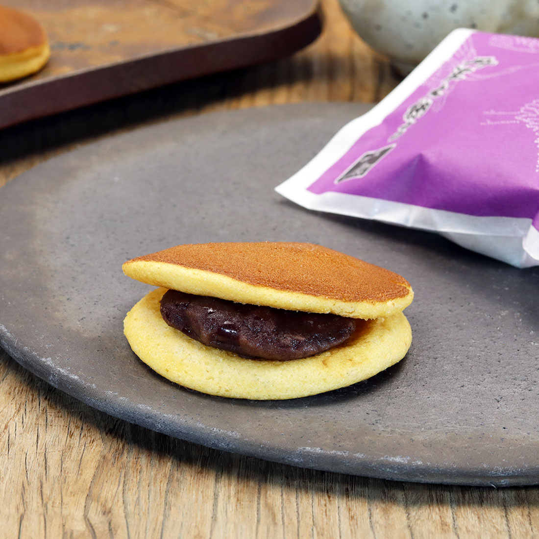丹波大納言小豆は丹波地方発祥の晩成品種小豆の品種群名で、その歴史は古く、兵庫県・京都府を中心に栽培される大粒で至極美味な高級品種の小豆です。京の都や江戸へと献上されて重宝されてきました。江戸城中では大納言は太刀を抜いても腹を切らずに済むことから、煮えても腹切らぬ(皮が割れない)この地の小豆に大納言の名が与えられたといわれています。 丹波大納言小豆の年間市場出回り量は約800トンと、大産地である北海道の小豆の7万トンに比べその流通量は1%程度。晩成種のため生育期間が長く、山間の一人当たりの耕作面積は現在も少ないまま。 昼夜の温度差が大きい丹波地方のみで採れる小豆は、大粒で俵型の美しい形。赤い色が濃く、強い光沢があり、風味にも優れています。この丹波大納言小豆を風味をしっかり残して製餡し、発酵バターや和三盆糖なども使用した和のケーキのようなふわふわのどら焼きの皮で包んで、和菓子職人が1つずつ丁寧にどら焼きに仕上げます。