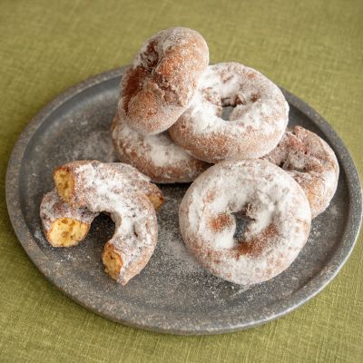体を温める効果や消化促進効果もある「生姜」をたっぷり生地に合わせた特別な一品。独特な風味と多彩な香りがいっぱいに広がります。ドーナツ生地には酒粕や甘酒も加えています。健康面でも魅力的な食材「生姜」の風味をお楽しみいただけるように、試作を何度も繰り返して完成しました。揚げ油にもこだわり、香りと風味がケーキ生地と調和するよう、鮮度を見極めてこまめに入れ替えを行っています。