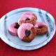 フランボワーズの酸味たっぷりのドーナツを、ルビーチョコで1つ1つディップしました