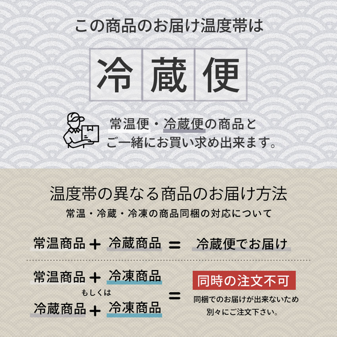 - 同じ温度帯の商品同士 での 同梱は可能です。 (ただし、同一注文に限る)