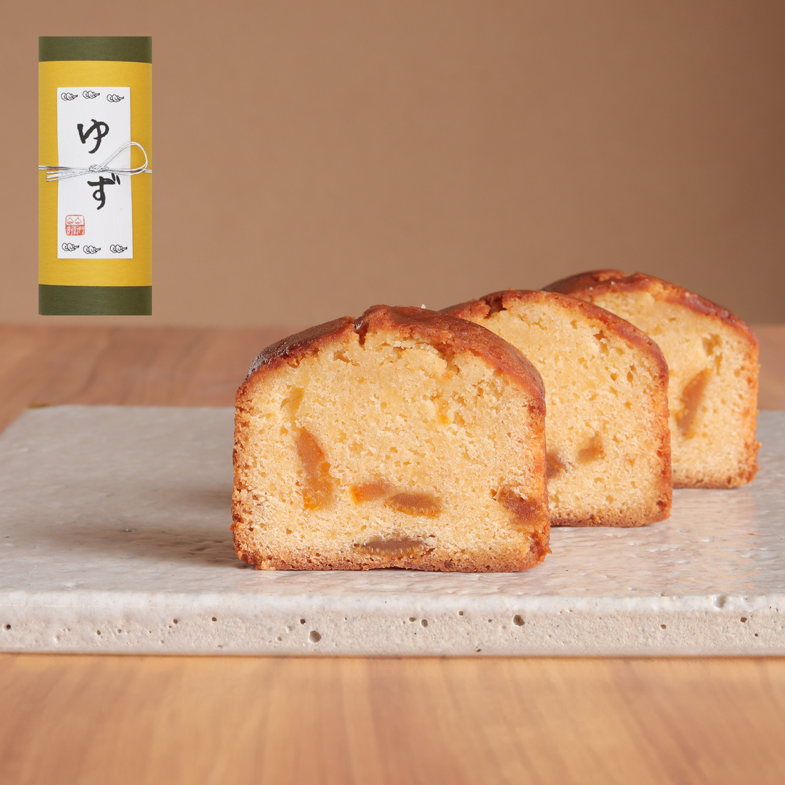 12月だけの季節限定のパウンドケーキ。冬の寒い中、ゆずの酸っぱい香りを嗅ぐと、なんだか落ちつきを感じます。このケーキは、 自然の美味しさを凝縮したユズピールを、ゆず果汁でさらに煮詰めて和三盆糖の優しい甘さを感じるバターケーキに合わせて仕上げました。ゆず独特の美味しさと香りをお楽しみいただけるケーキです。1年の最後の季節限定パウンドケーキです。