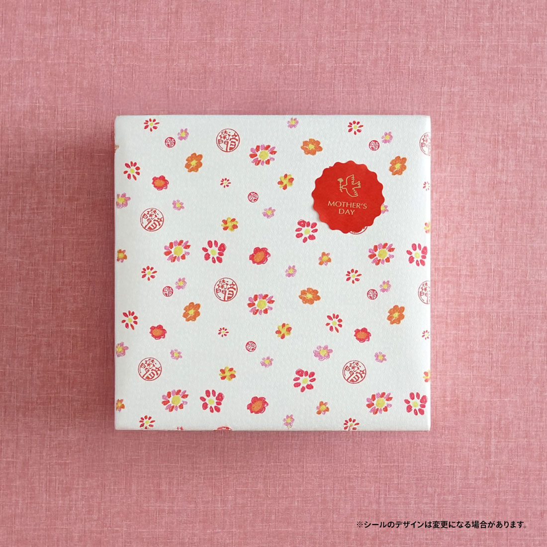 箱入りギフト包装、専用包装紙に 母の日のシール付きでご用意いたします。