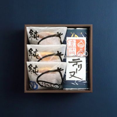 音衛門の一番人気の栗のケーキ「栗のテリーヌ」と、国産和栗の品種(美玖里)のペーストを一つ一つ丸めて包んだどら焼きを、ギフトセットでご用意いたしました。相手様へのお気持ちを、お菓子に添えてお届けいたします。