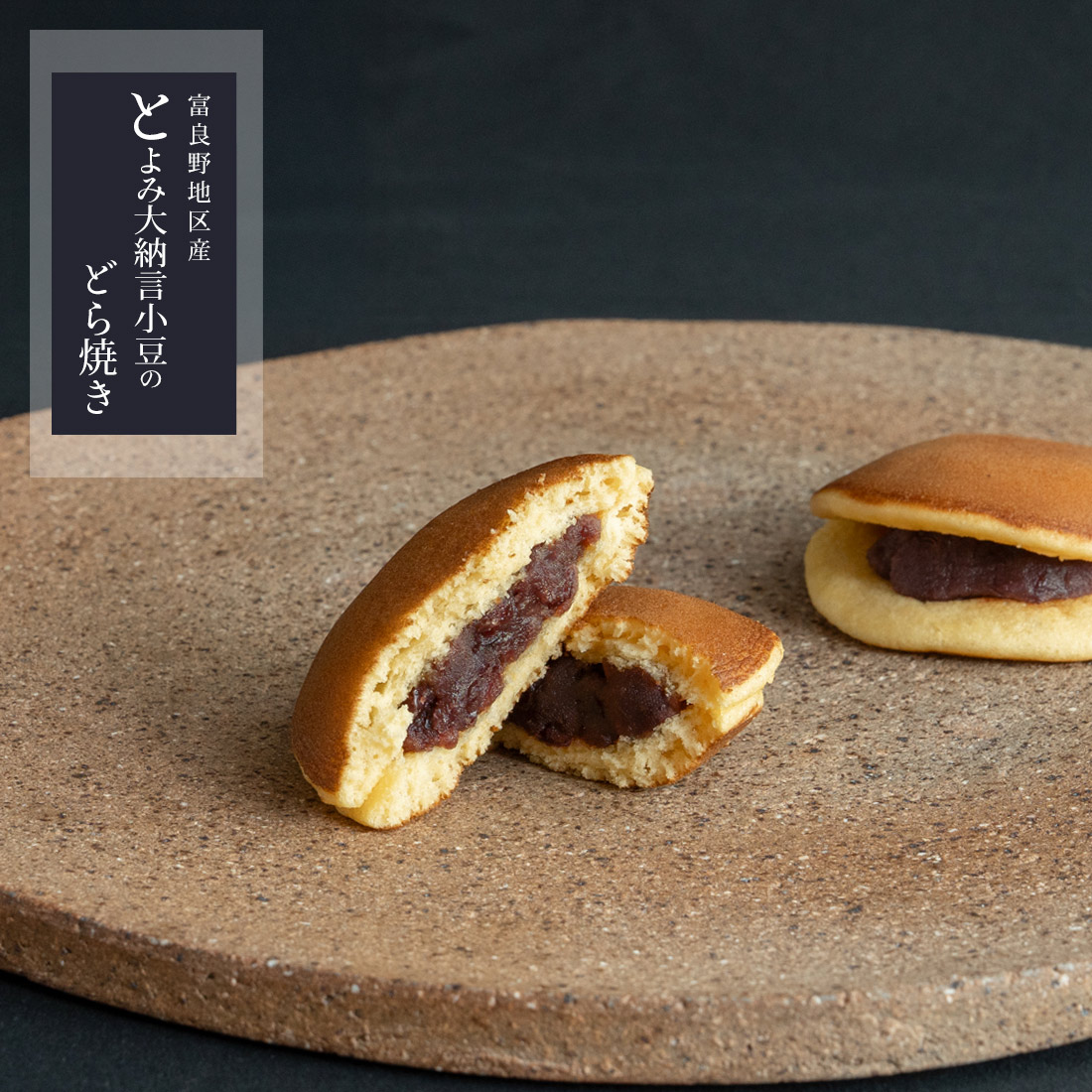 北海道の富良野地区だけで収穫された「とよみ大納言小豆」を風味豊かな粒あんに炊いて、職人の手作りのどら焼きでご用意しました。とよみ大納言とは、豊かな実りを願って命名された、大納言小豆です。風味豊かな大納言小豆の粒あんを、発酵バターや、和三盆糖なども使用したどら焼きの皮で包み、一つ一つ職人が手作業でご用意をしています。ふんわり、ケーキのようなどら焼きで、褐色に輝く小豆の風味をお楽しみください。