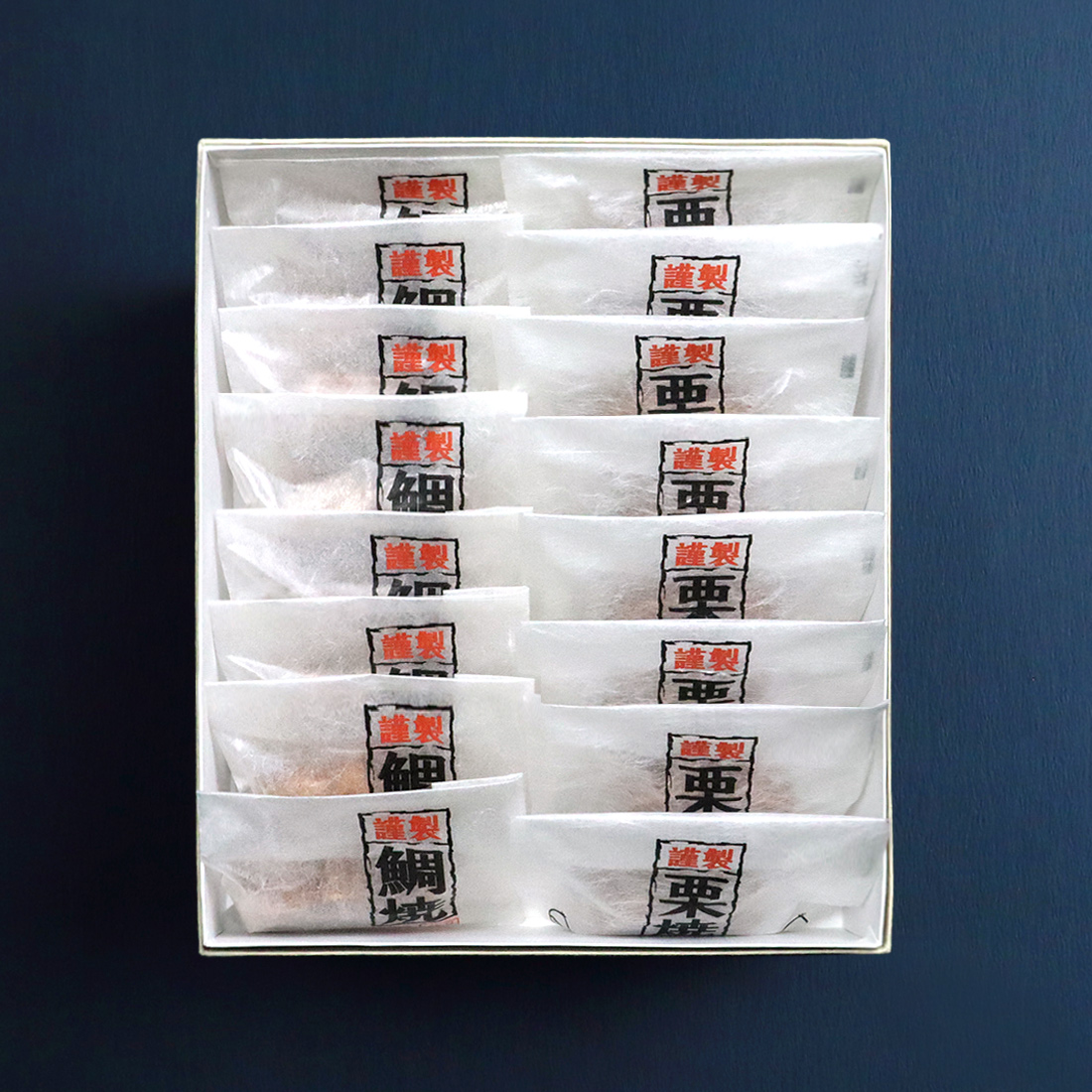 ふっくら炊き上げた大納言小豆の粒餡を、たっぷりと包み込んだ音衛門特製の饅頭。手にした瞬間思わず笑みがこぼれる、愛らしい鯛のかたちに仕上げました。縁起の良い姿に、噛むほどに広がる素材本来の旨み。まるで小さな幸せが口いっぱいに広がるような、心ときめく焼菓子です。