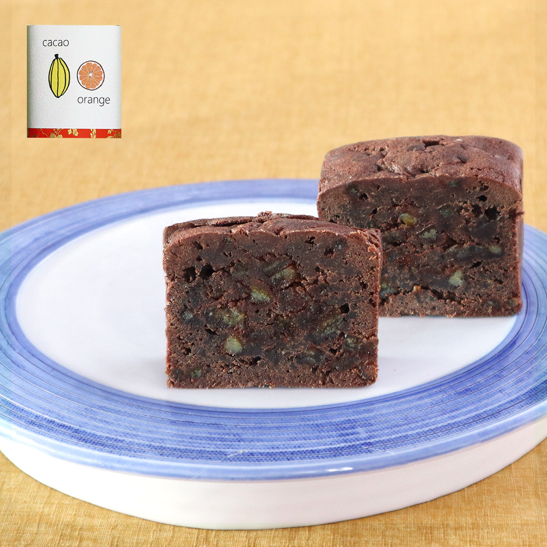 カカオバターとカカオマスに、きめ細やかで上品な甘さをもつ和三盆糖を合わせ、音衛門ならではの独自配合で、奥行きのある濃厚なチョコレートを丁寧に仕立てました。その特別なチョコレートを生地の隅々までしっかりと練り込み、しっとりとなめらかな口あたりと、深いコクを存分に楽しめる、とびっきりのチョコレートケーキに焼き上げています。生地には香り高いオレンジピールを合わせ、仕上げにはオレンジのリキュールをほんのりと使用。焼き上がりとともに立ちのぼる爽やかな柑橘の香りが、濃厚なショコラの味わいをやさしく引き立てます。口に入れた瞬間に広がる、なめらかで芳醇なショコラの余韻と、後味に感じるオレンジの軽やかなアクセント。ひと切れごとに、心まで満たされるような贅沢な味わいが続きます。