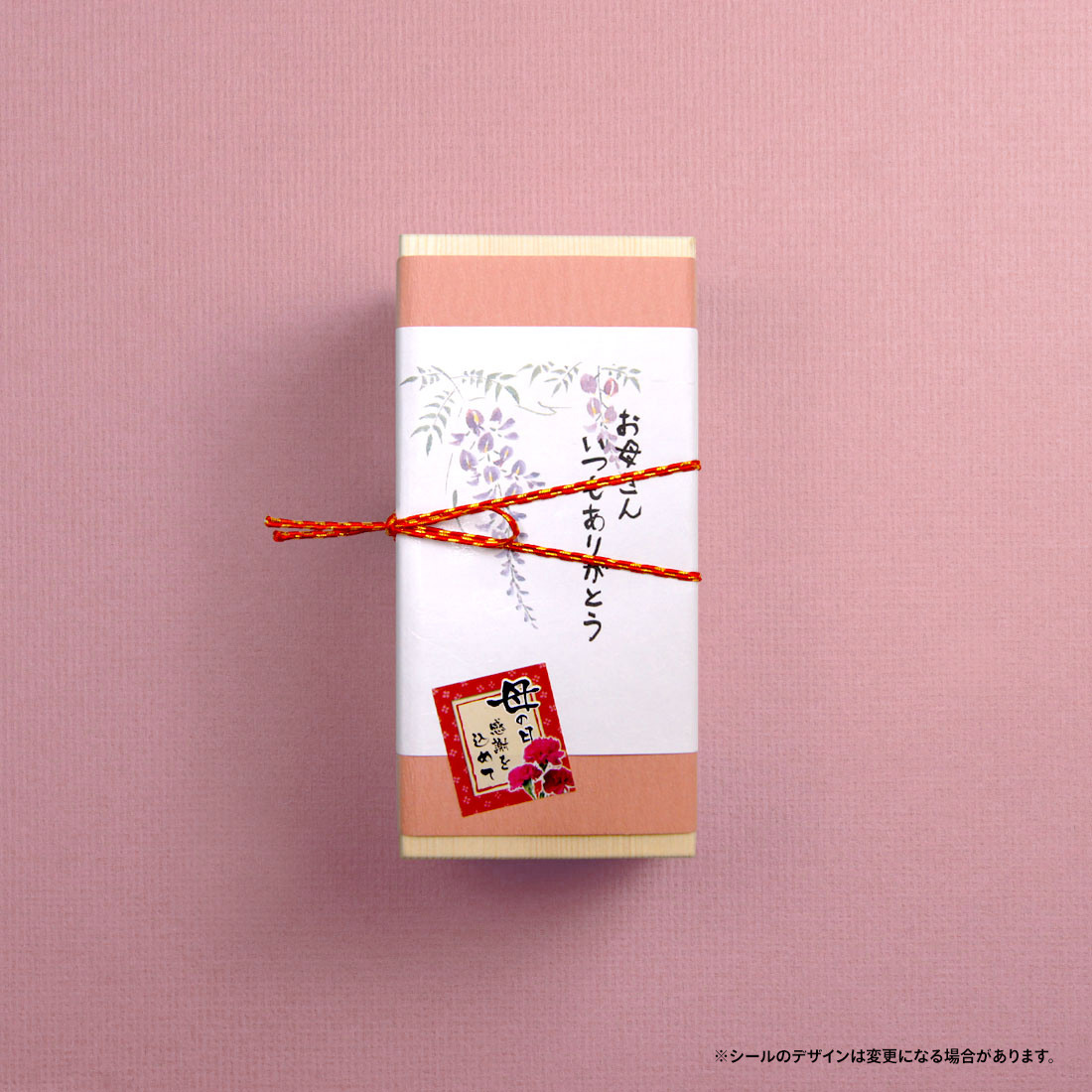 木箱入りギフト包装、母の日のシール付きでご用意いたします。