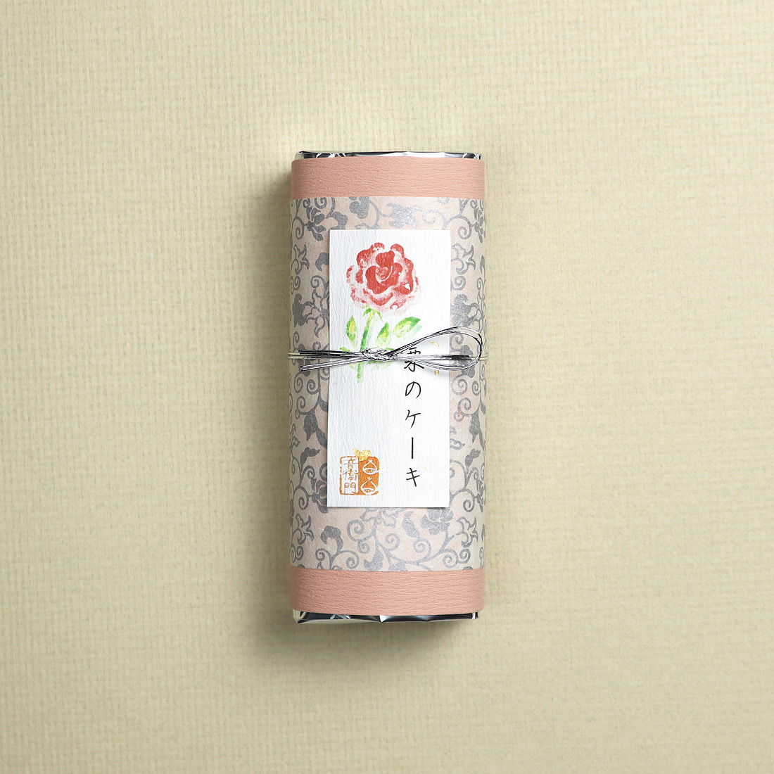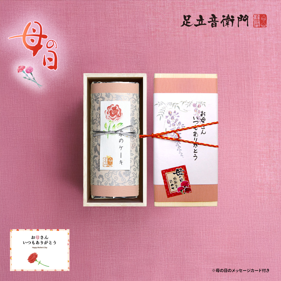 母の日仕立てのWEB限定 栗のケーキ「 楽」。母の日のオリジナル包装にメッセージカード付きでご用意します。日頃の感謝の気持ちにお菓子を添えて、心を込めてお届けします。