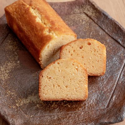 風味豊かな低水分の発酵バターや讃岐三谷家の手づくり和三盆糖など、厳選素材を使用。多くのお客様から愛され続ける基本のケーキです。当店でご用意する中ではお求めやすいケーキですが、一番作るのが難しいケーキです。 まず、マーガリンを使わないため、バターをちょうどの温度で管理、コントロールしないとちゃんとした生地にならない事。次に、パウンドケーキは、バター、砂糖、卵、小麦粉が基本の配合では、4分の1づつ入りますが、粉のパート(アーモンドの粉も入ります。)が、ケーキとして成り立つギリギリまで、減らしてあります。そのため、くちどけの良いケーキとなっていますが、いつも失敗する可能性と戦って製品に仕上げています。今では、和三盆糖は、スーパーやコンビニで販売されるスイーツにも使用されるようになりましたが、おとえもんがフランス菓子に最初に使用しました。四国の香川県、徳島県が和三盆糖の産地としては代表的です。香川産は、力強く風味に高さがあるように感じます。徳島産は、優しい風味です。音衛門では、香川の創業文化元年三谷家の和三盆を分けていただいて使用しています。