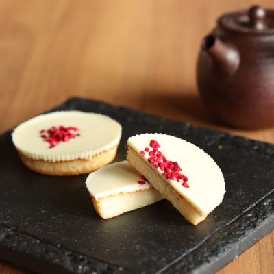 発酵バターや和三盆糖も使用した優しい口あたりのフィナンシェに、ホワイトチョコを重ね、フランボワーズのフリーズドライを飾りました。チョコレートのミルクの香りに爽やかなベリーの酸味をお楽しみください。