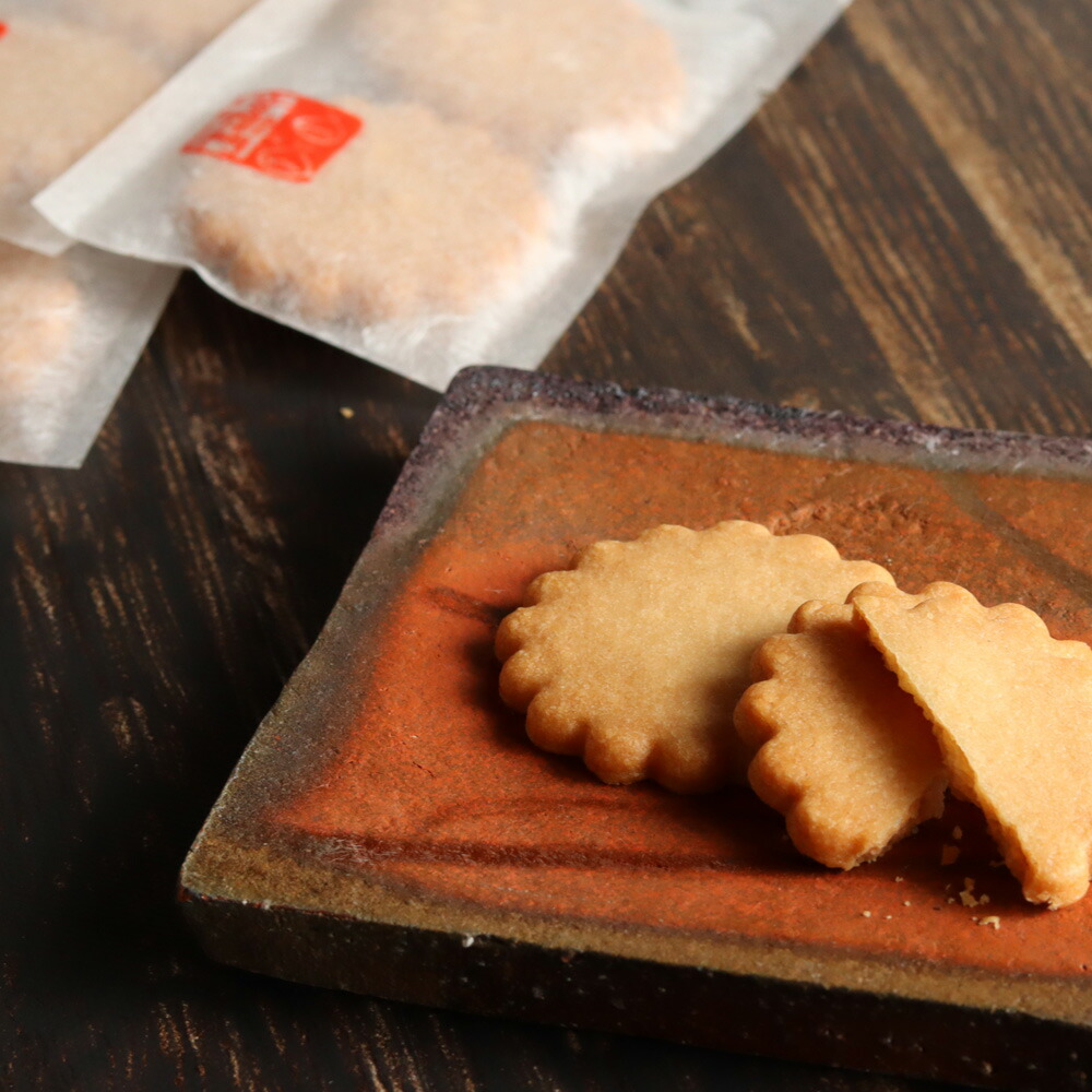 じっくり火を入れ、香ばしさを引き出した小麦粉。発酵バターの豊かな香りが広がる生地。讃岐和三盆糖ならではの、力強くも優しい口どけ。これらの上質な素材を惜しみなく使用し、ご家庭でお母さんが作るような素朴で温かみのあるクッキーに仕上げました。添加物を使用せず、素材本来の美味しさを大切にしています。大切な人への贈り物としても、自分へのご褒美としてもぴったりの焼菓子です。専用木箱入りギフトでご用意。厳選された素材と丁寧な製法で、ほっとするひとときをお届けします。