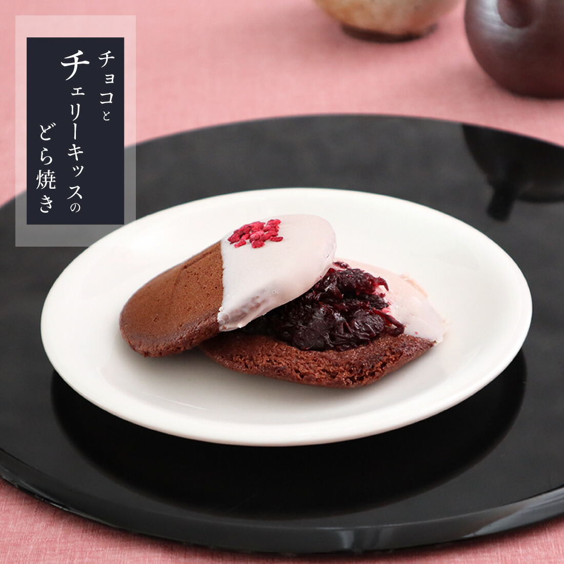 すべてが手作業による、数量限りの特別品。チョコレートの豊かな香りとやさしい甘さに、チェリーキッスの爽やかな酸味が重なり、カカオ香るどら焼きの皮が全体をキリッと引き締めます。