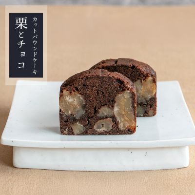 パウンドケーキ型に2種類の溶かしたショコラの生地を流し、マローネの栗を並べてじっくり焼いたショコラのテリーヌ。カカオ分70%のフルーティーで酸味のあるショコラと、カカオ分66%の癖のない爽やかなショコラを合わせて、口どけの良さに、後口スッキリの仕上がりになりました。栗の食感、香りがショコラのケーキにアクセントを加えます。