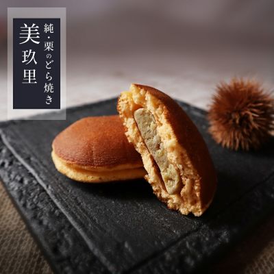 美味しく(美)、外観が優れており(玖:美しい黒色の石)、この品種が普及することで産地(里)が豊かになることを願い命名された美玖里。(※美玖里は栗の品種名です)国内で収穫された生栗は、保管時間を最小限にしてすぐ加工にかかります。品質が落ちないよう、温度管理を徹底し、保管期間、加工時間をできるだけ短くし、栗本来の色味、風味を損なわないよう栗のペーストに仕上げます。大事に加工された栗のペーストは、含まれる栗の粒をできるだけ残すように、ペースト自体に余分な力を加えず、職人が優しく手のひらで覆うようにどら焼きに仕上げます。