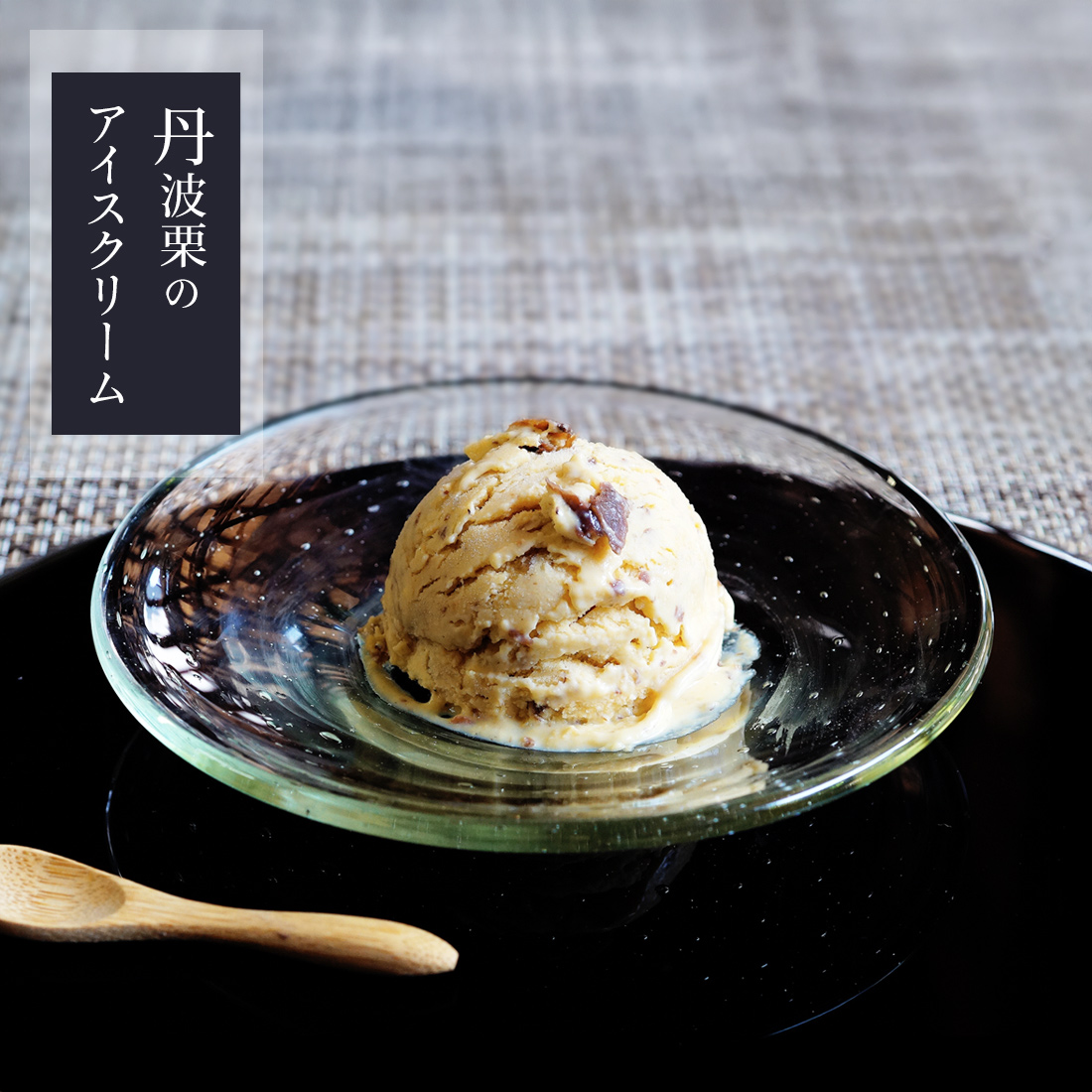 丹波栗たっぷりの、極上のアイスクリームになりました。丹波栗のほっくりとした味わいに、ほんのりラムを合わせた大人の味わい。できる限り栗の粒を残し、栗の風味と独特な舌触りをお楽しみ頂ける至福のアイスクリーム。素材の良さを活かし、余計なものは加えずに寒天で仕上げた贅沢な逸品です。