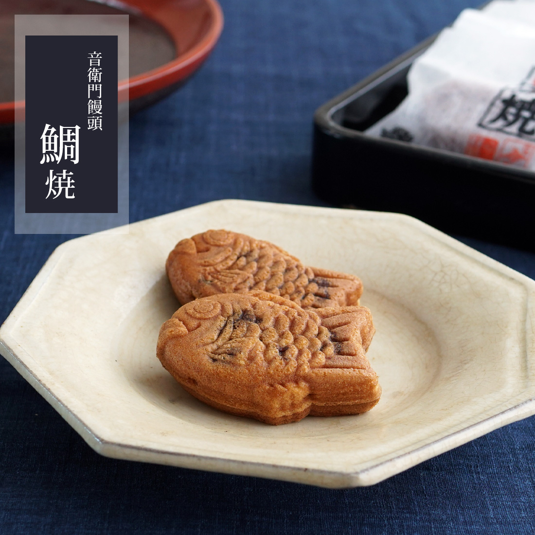 ふっくら炊き上げた大納言小豆の粒餡を、たっぷりと包み込んだ音衛門特製の饅頭。手にした瞬間思わず笑みがこぼれる、愛らしい鯛のかたちに仕上げました。縁起の良い姿に、噛むほどに広がる素材本来の旨み。まるで小さな幸せが口いっぱいに広がるような、心ときめく焼菓子です。