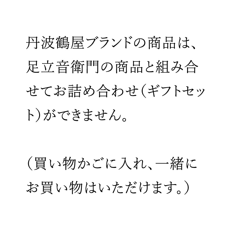 - 丹波鶴屋ブランドの商品は、足立音衛門の商品と組み合せて お詰め合わせ(ギフトセット)ができません。