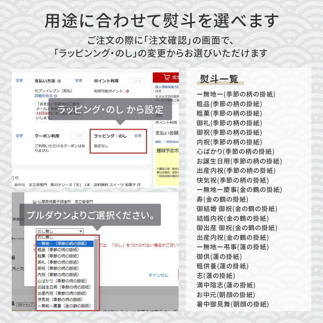 ギフト箱入り商品はお熨斗のご用意ができます